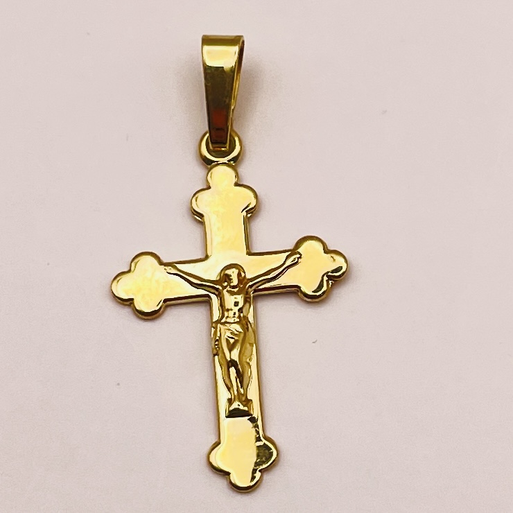Moderner Jesus Kreuz Anhänger in Bicolor 14K 585 Gold ID: A2-2/14X1H