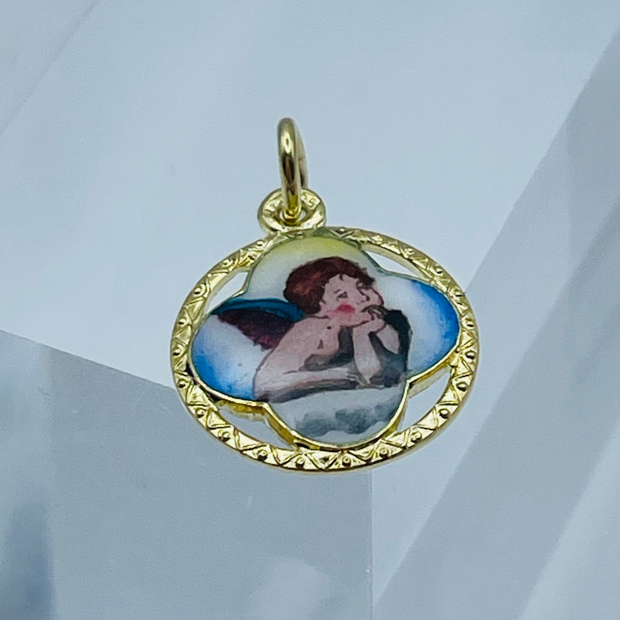 Goldener Schutzengel-Herz Anhänger 14K 585 Gold