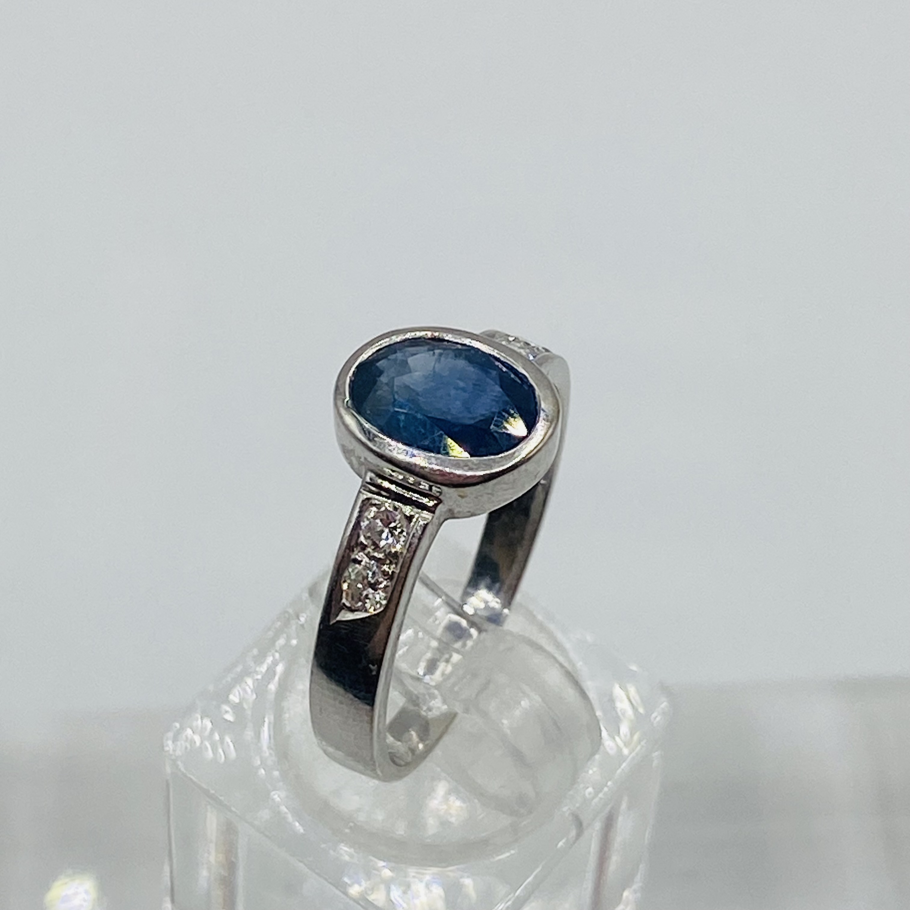 - Besatz: 4x Brillanten Gesamt ca. 0,16ct – Synth Saphir