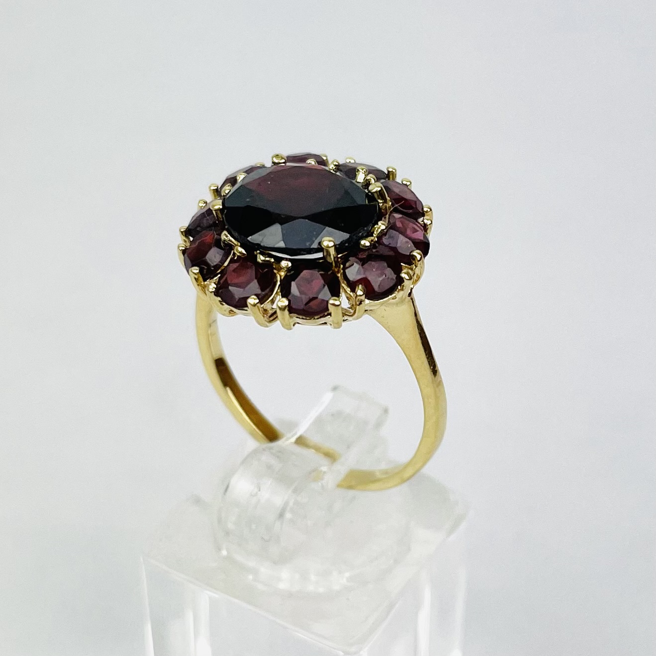 Goldener Ring mit rotvioletten Steinen 14K 585 Gold RW56
